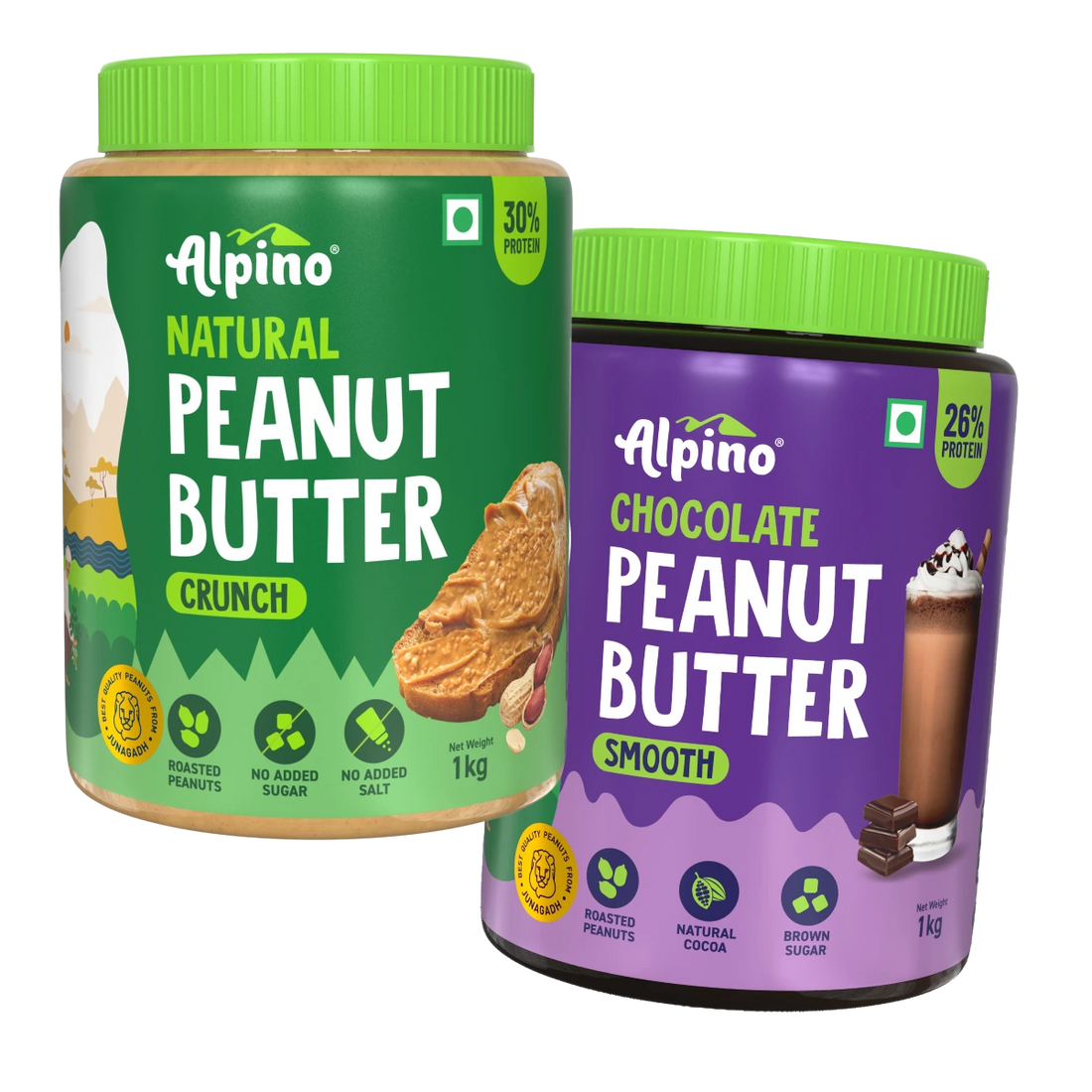 Best Seller Peanut Butter Combo - Natural Crunch 1kg & Chocolate Smooth 1kg - Saver Value Pack