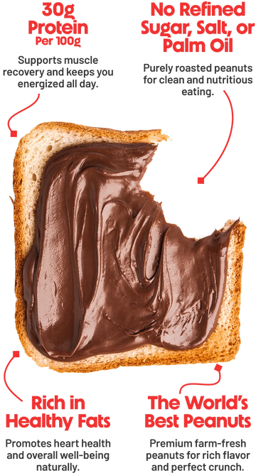 30% protein-packed peanut butter for fitness lovers, in crunch or smooth.