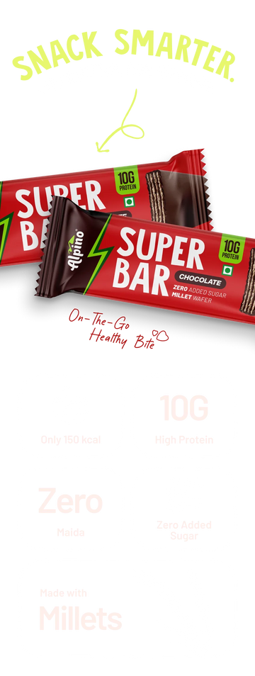 Alpino’s Super Bar Chocolate is designed for anyone craving a rich, chocolatey treat that’s also a powerhouse of nutrition. Blending premium cocoa, peanut protein, and wholesome millets, this protein bar delivers long-lasting energy, supports muscle recovery, and curbs sweet cravings—making it the perfect companion for active lifestyles. Whether it’s a busy morning, post-workout boost, or an on-the-go snack, every bite is satisfyingly delicious and clean.